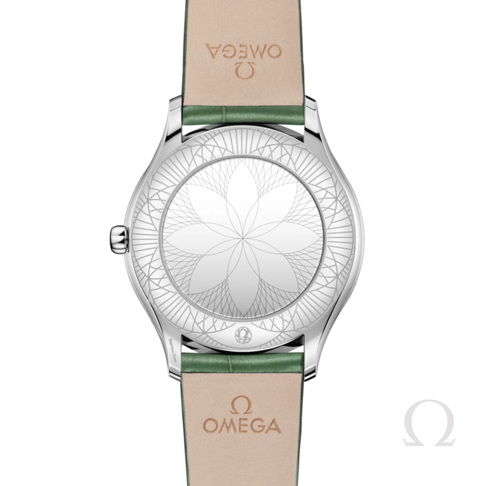Omega De Ville Trésor Green 36mm là mẫu đồng hồ thanh lịch nằm trong bộ sưu tập De Ville Trésor của Omega. Thiết kế tối giản và sang trọng với mặt số màu xanh lá cây đậm, mang lại phong cách hiện đại và tinh tế. Mẫu đồng hồ này được chế tác để tôn vinh sự nữ tính và thanh lịch, với các chi tiết kim cương tô điểm dọc theo viền vỏ.